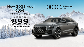 ^Audi of America, Inc will pay a $25,000 national customer credit towards a new 2025 RS e-tron GT performance; $20,000 on a new 2025 S e-tron GT; $10,000 on a new 2025 A8/S8, 2026 RS e-tron GT performance; $7,500  on a new 2026 S e-tron GT; $6,000 on a new 2025 A6 Sedan, A6/S6 Sportback e-tron, Q4 e-tron/Q4 Sportback e-tron, Q6/SQ6 e-tron & 2026 RS Q8 performance; $5,000 on a new 2025 Q6 Sportback e-tron 60/SQ6 Sportback e-tron; $4,000 on a new 2025/2026 Q7 55; $3,000 on a new 2025 S6 Sedan & 2026 Q4 e-tron/Q4 e-tron Sportback; $2,000 on a new 2025/2026 Q7 45/SQ7; $1,500 on a new 2025 A7/S7; $1,000 on a new 2025 A3 Sedan. Customer credit applied toward MSRP and is not available for cash. ^^1.99% financing rate applies to all new MY25 A5, Q5 & MY26 A3 Sedan up to 72 month terms on approved credit. Expires 01/02/26. See dealer for complete details.